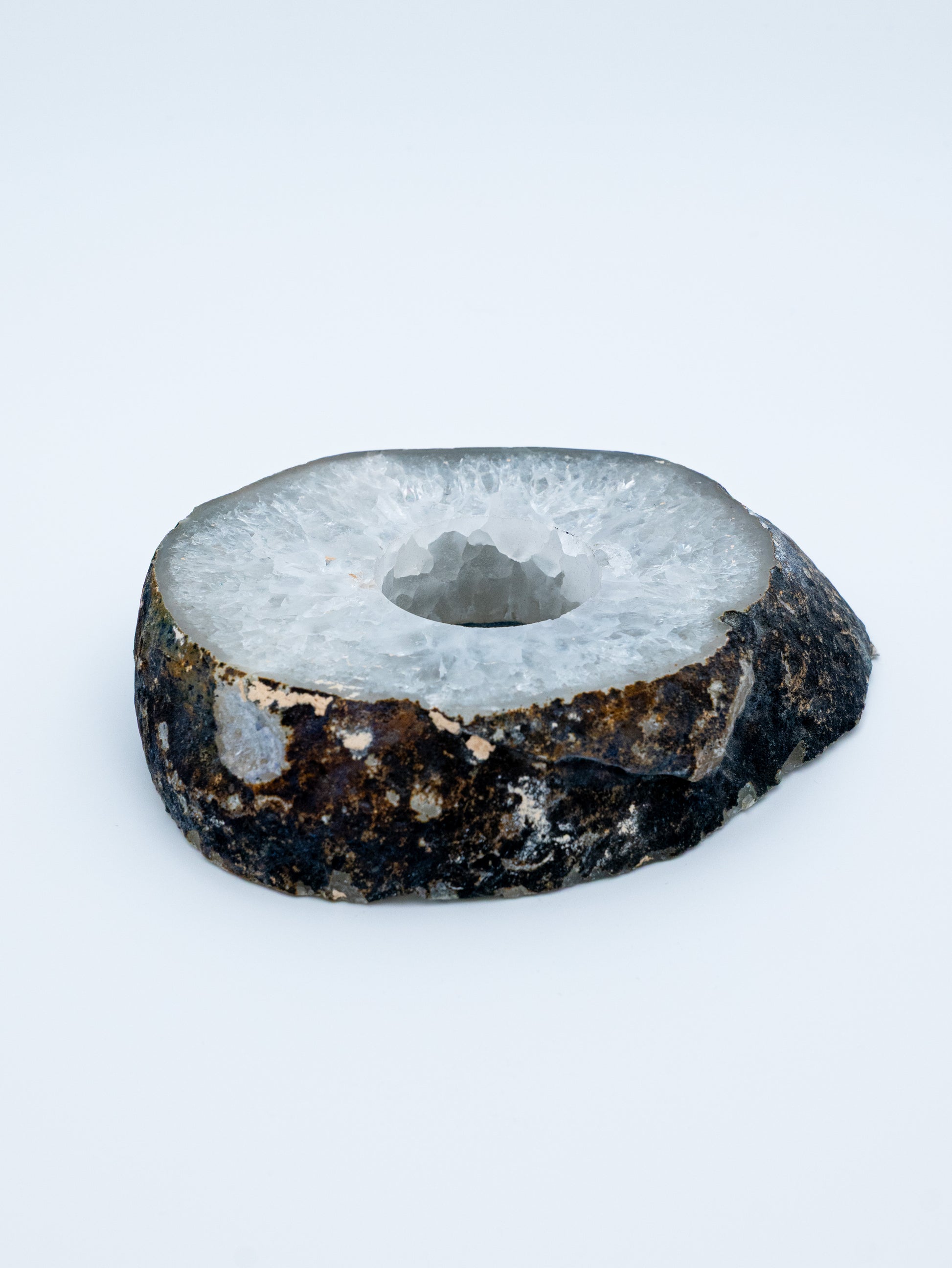 Agato žvakidė – tai harmonijos, žemės ramybės ir apsaugos švyturys, kuriame susijungia natūrali akmens struktūra ir ugnies šviesa. Agatas nuo seniausių laikų laikomas stabilumo ir saugumo akmeniu, o žvakidės forma sustiprina jo gebėjimą kurti ramią, subalansuotą erdvę, kurioje galima sustoti, nurimti ir sugrįžti į save.