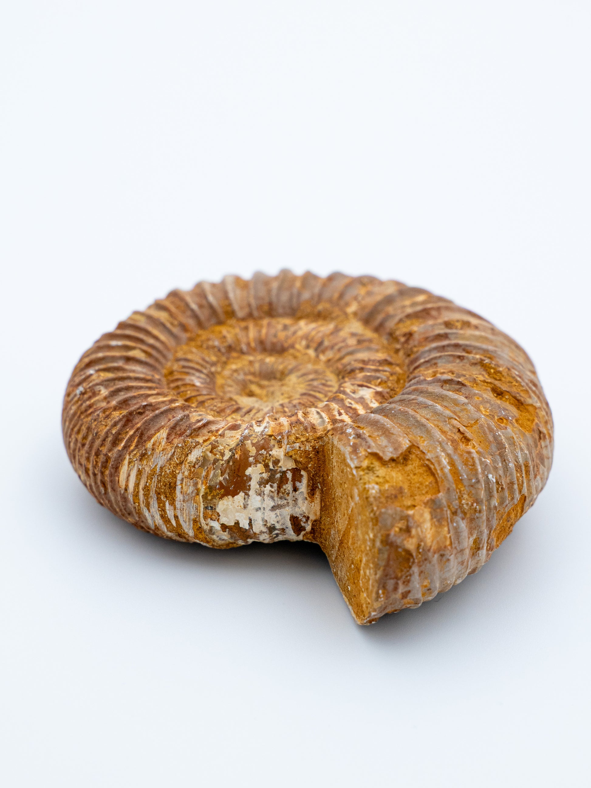 Tai natūralus amonitas, susiformavęs per milijonus metų. Kiekvienas egzempliorius yra visiškai unikalus savo spiralės forma, raštu ir spalviniais perėjimais – tikras laiko ir Žemės atminties fragmentas, nešantis ramią, brandžią ir labai gilią energiją ✧