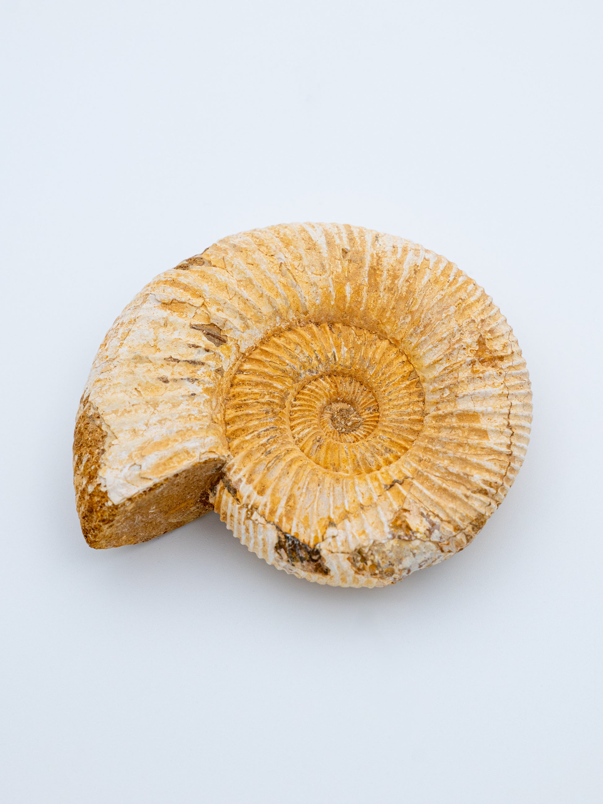Tai natūralus, šviesus amonitas, susiformavęs per milijonus metų. Kiekvienas egzempliorius yra unikalus savo spiralės raštu, atspalviu ir tekstūra, todėl gali nežymiai skirtis nuo pateiktos nuotraukos – išlaikydamas autentišką kilmę ir senovės energiją ✧