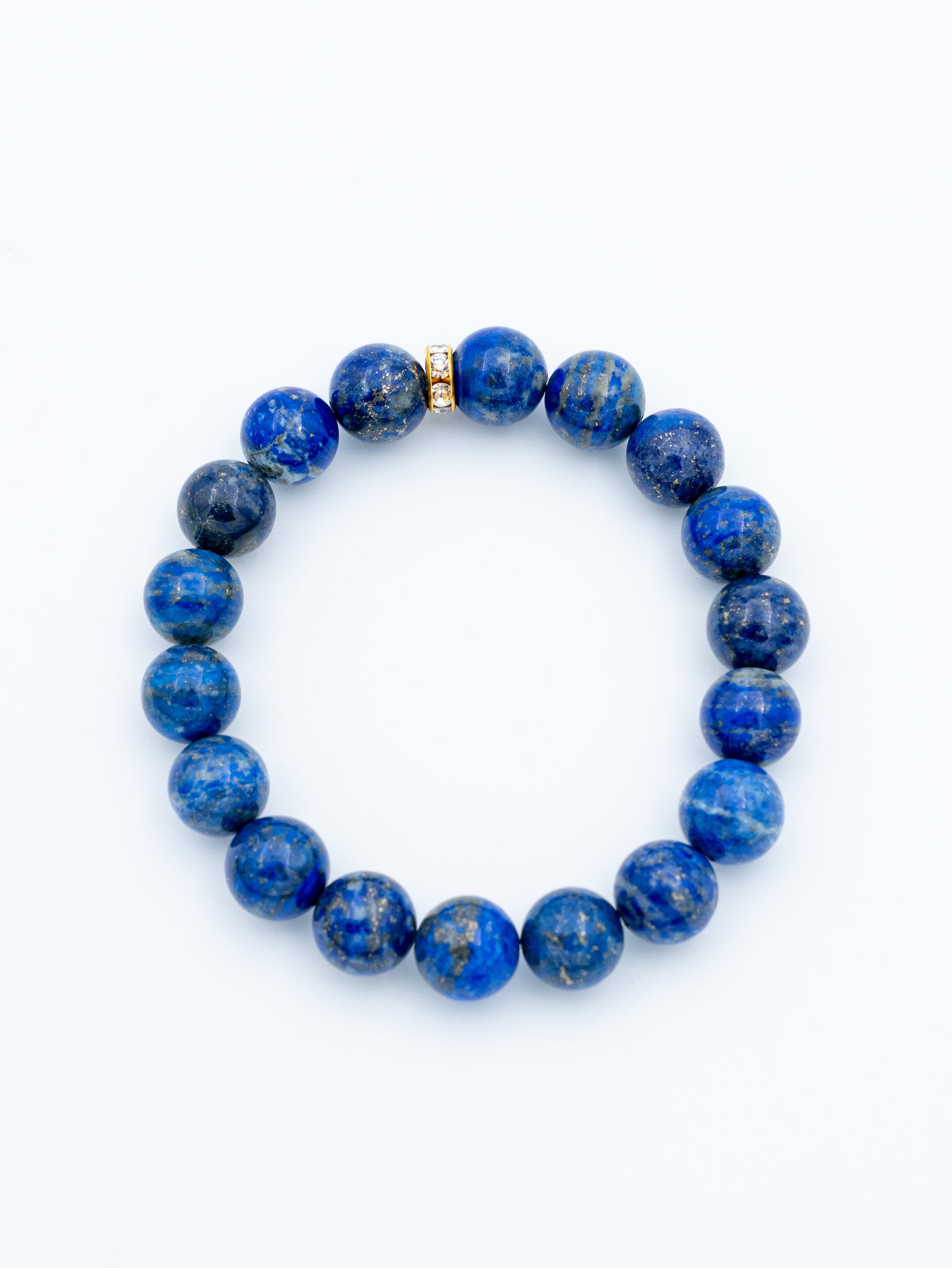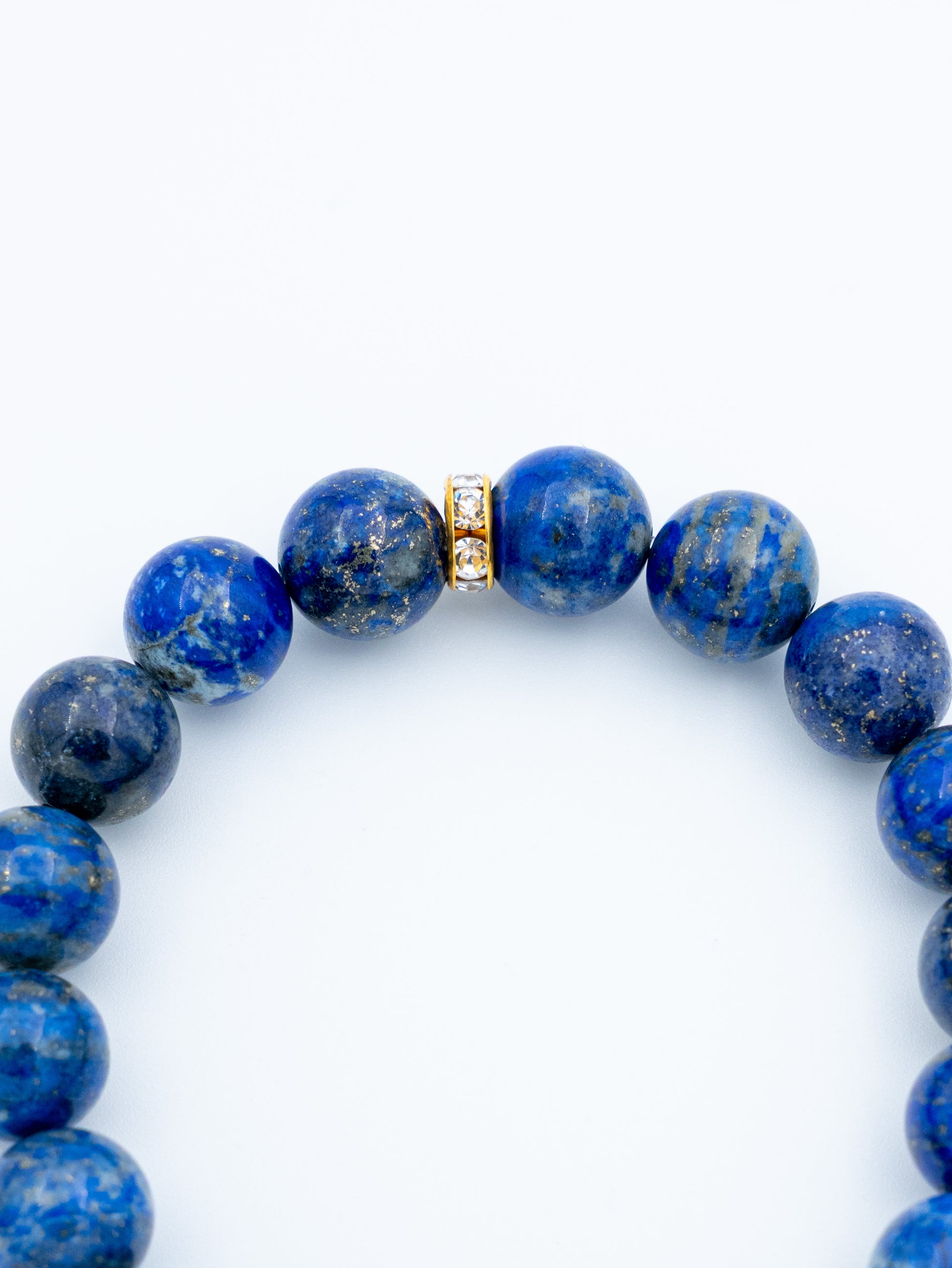 Lazurito apyrankė – tai intuicijos, dvasinio augimo ir gyvenimo iš tiesos kristalas, nuo seniausių laikų laikytas išminties, vidinės tiesos ir sąmoningo regėjimo simboliu. Jo gilus mėlynas atspalvis, persmelktas auksinėmis pirito gyslomis, primena naktinį dangų su žvaigždėmis – vietą, kur gimsta ne iliuzijos, o tikrasis žinojimas.