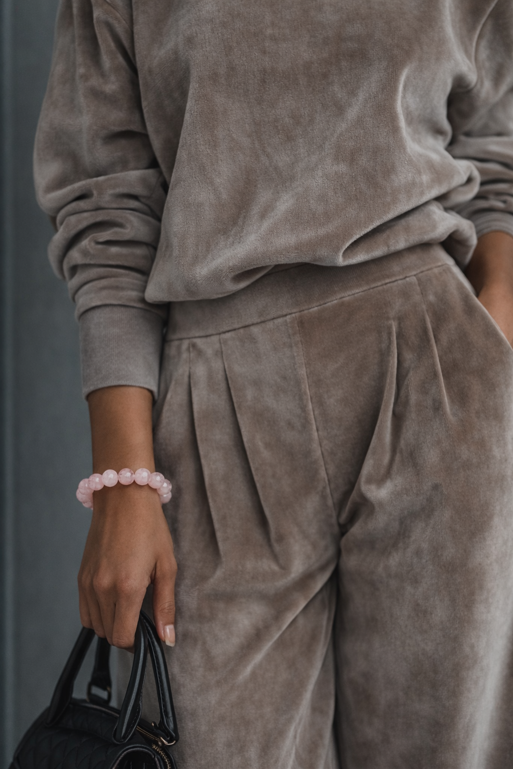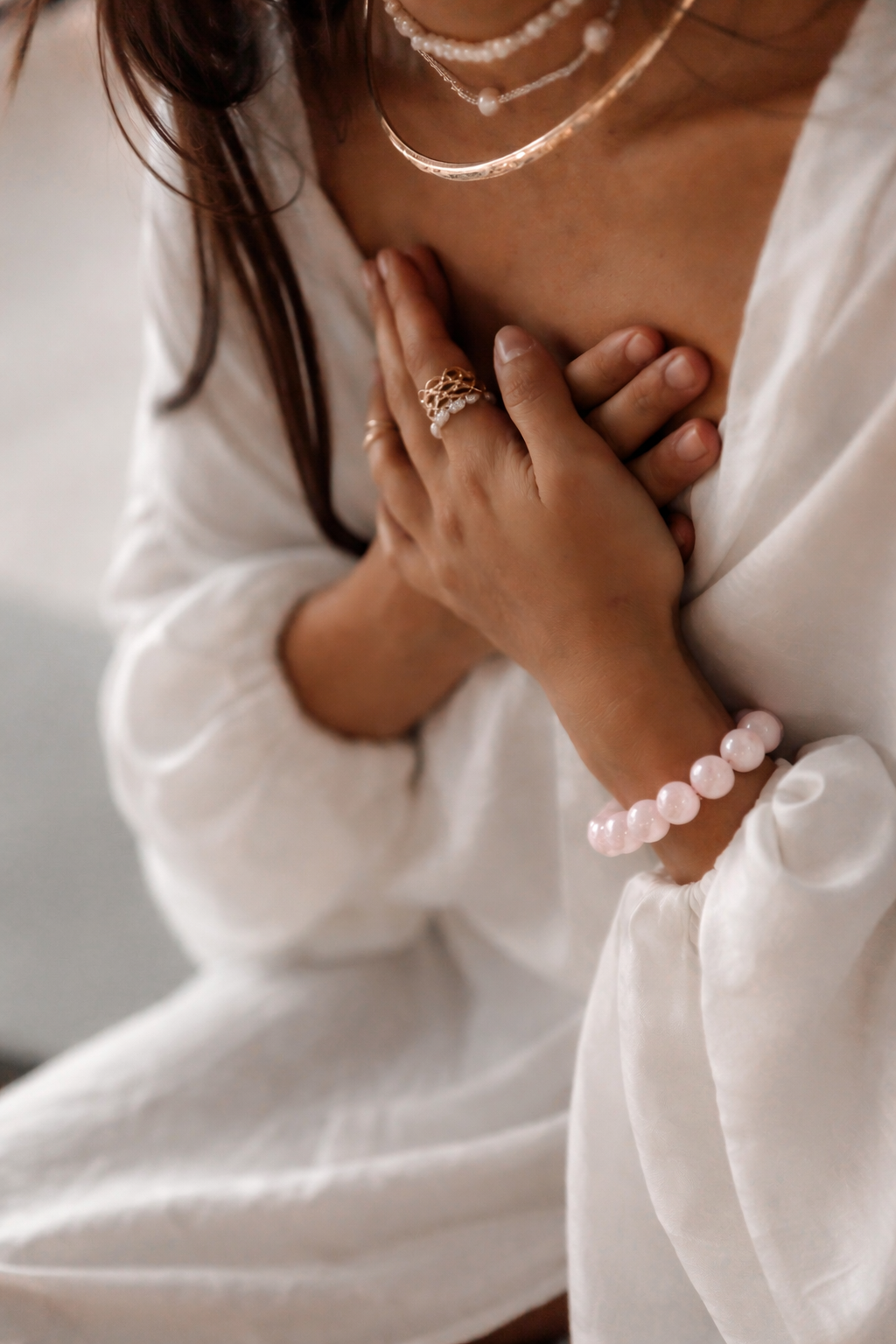 Rožinio kvarco apyrankė – tai tylus širdies saugumo ir vidinės švelnios stiprybės papuošalas. Tai akmuo, kuris neprovokuoja emocijų protrūkių, neverčia atsiverti per jėgą ir nežada greitų jausminių pakilimų. Jis veikia kitaip – lėtai, saugiai ir giliai, leisdamas širdžiai nusiraminti ir sugrįžti į pasitikėjimą savimi.