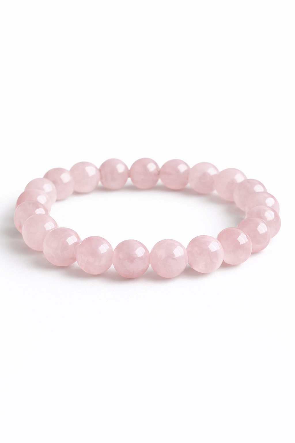 Rožinis kvarcas laikomas brandžios meilės akmeniu – ne romantiškos iliuzijos, o meilės, kuri moka būti, laikyti ir neišsibarstyti. Apyrankės forma leidžia šiai energijai būti arti kūno, veikti nuolat ir labai subtiliai, be spaudimo.
