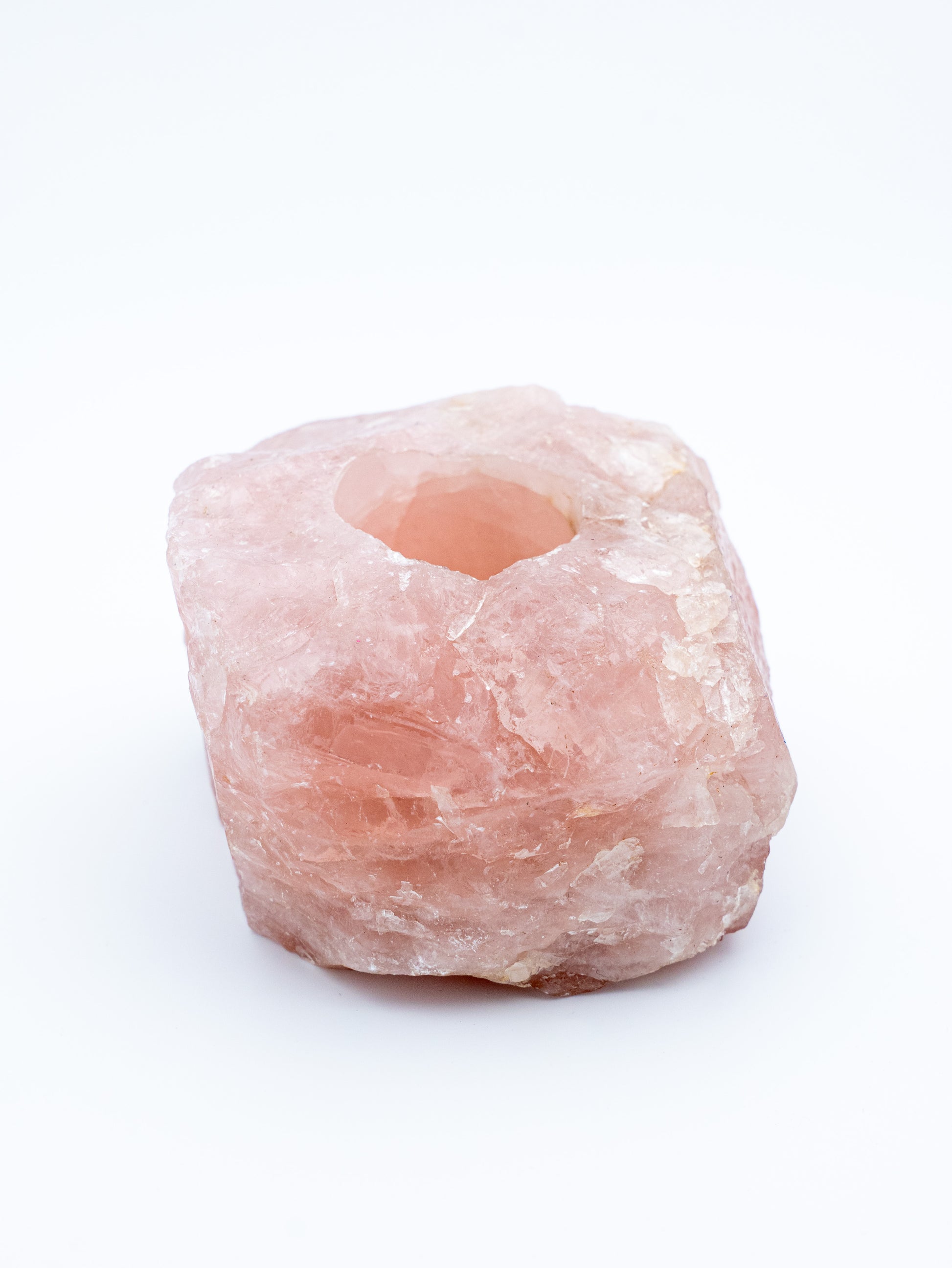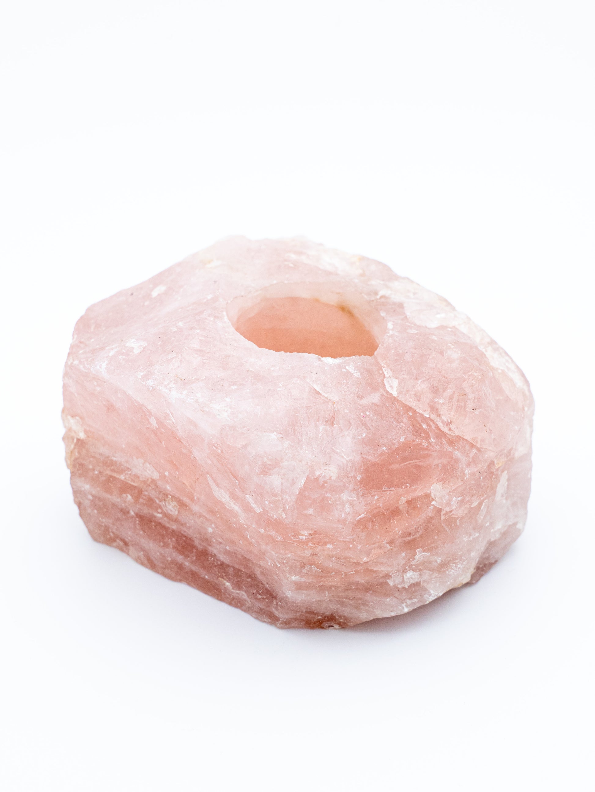 Žvakidės forma sustiprina šio akmens esmę: ugnies šviesa, pereinanti per rožinį kvarcą, sukuria minkštą, gyvą švytėjimą, kuris ramina emocijas ir šildo erdvę ne tik fiziškai, bet ir emociškai.