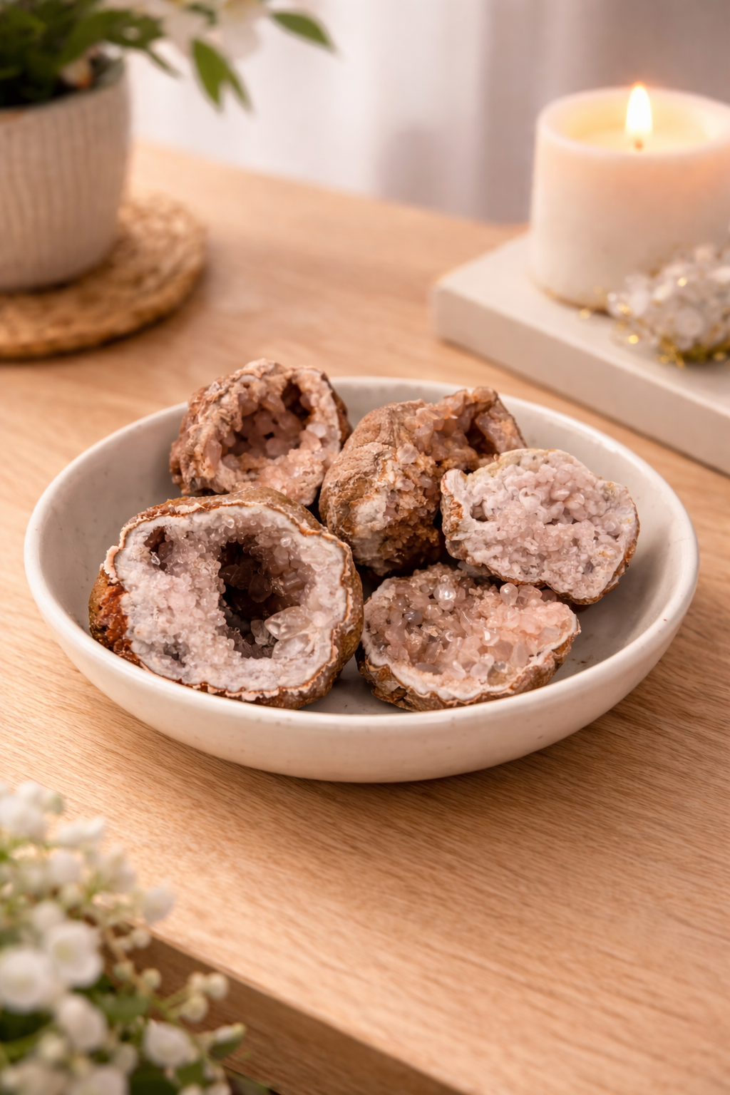 Rožinis ametistas tinka meditacijoms, ramybės erdvėms, miegamajam ar asmeniniam altorėliui. Tai akmuo, kuris palaiko lėtą, tikrą ir gilų ryšį su savimi.
