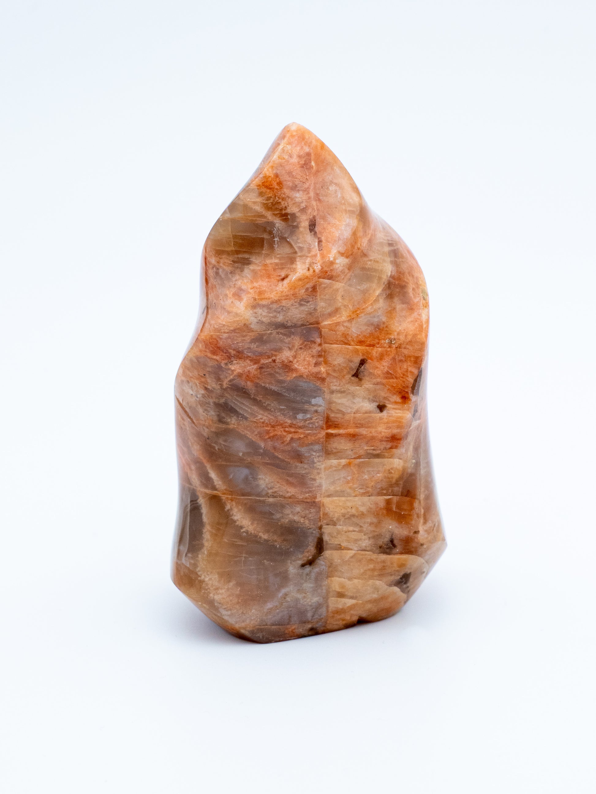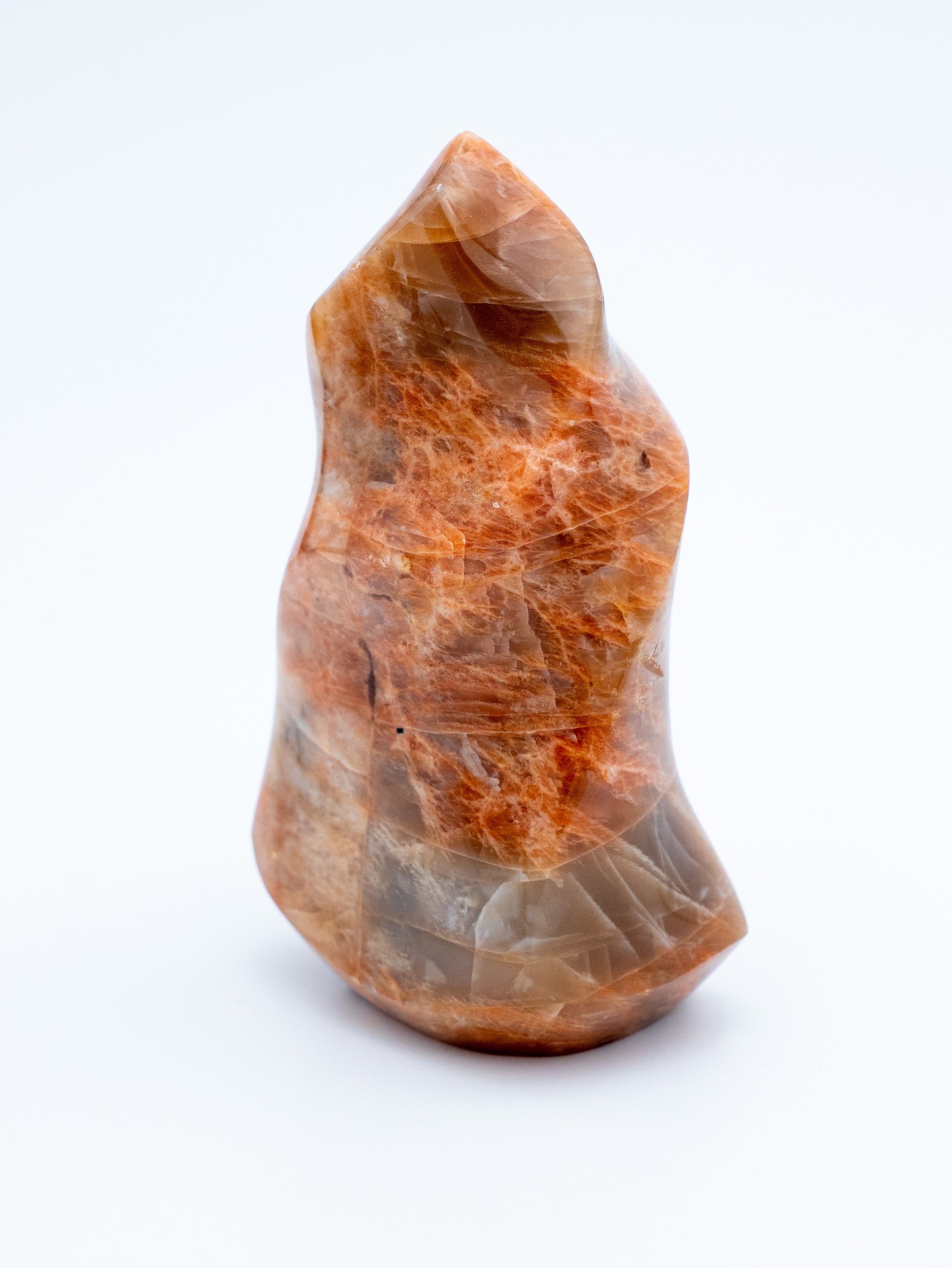 Saulės akmuo | Liepsnelė – tai vidinės ugnies, gyvybinės galios ir sąmoningo veikimo akmuo, nuo senų laikų siejamas su Saulės energija – šviesa, drąsa ir gebėjimu realizuoti savo potencialą. Jo auksiniai–oranžiniai atspalviai primena gyvą liepsną, kuri ne naikina, o šildo, palaiko ir maitina vidinius resursus.