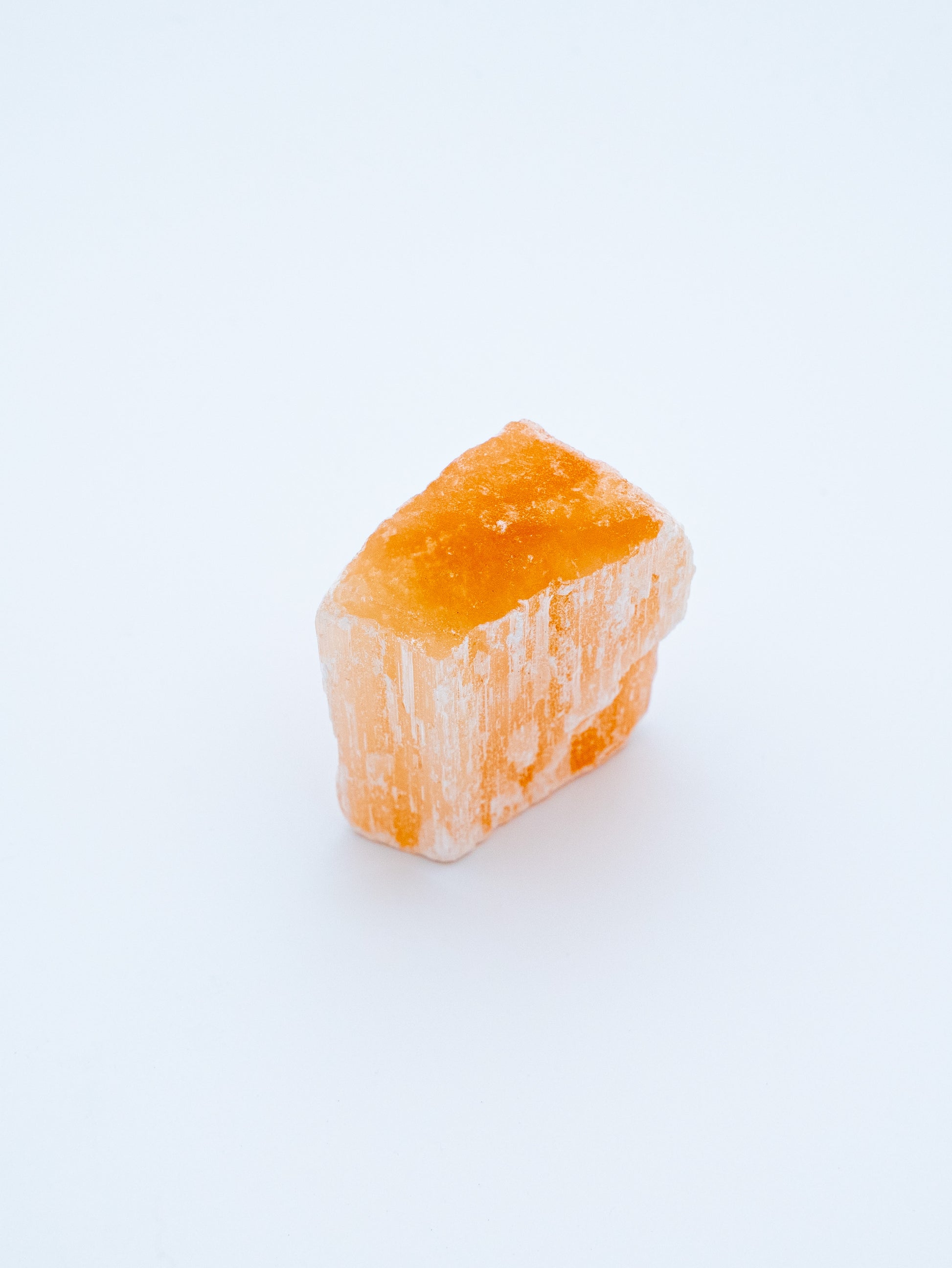 Tai natūrali, neapdirbta oranžinio selenito uoliena, susiformavusi gamtoje. Kiekvienas egzempliorius yra unikalus savo atspalviu, sluoksniais ir forma, išlaikantis autentišką mineralo kilmę ir šiltą, raminančią energiją.