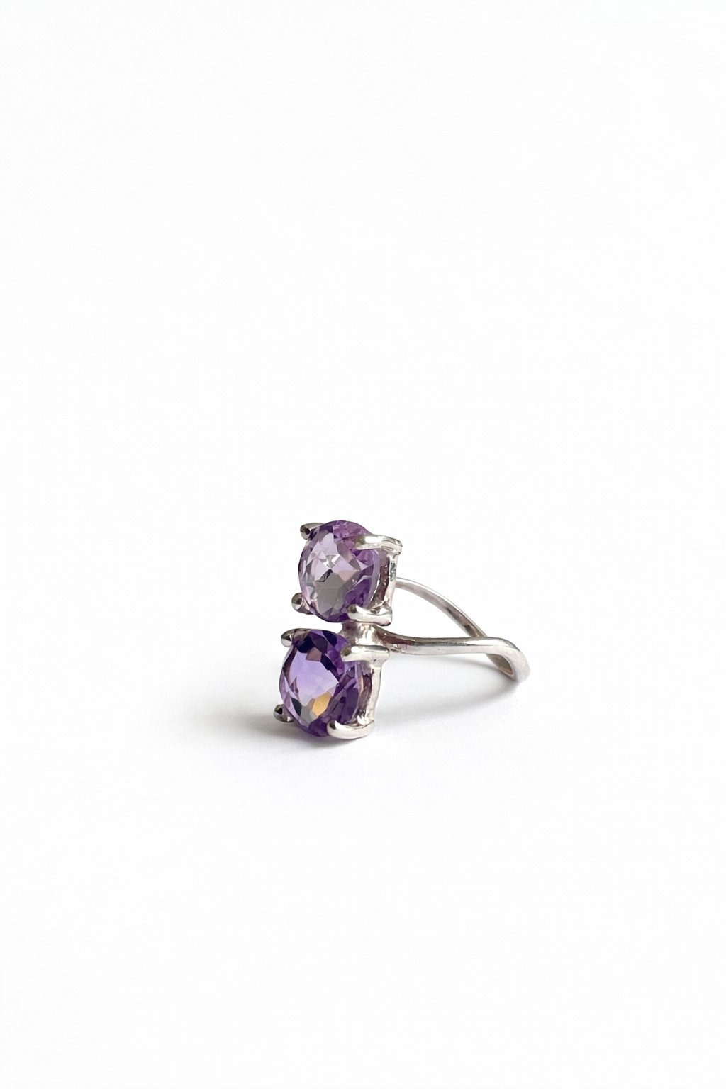 Sidabrinis ametisto žiedas – tai ramybės, intuicijos ir dvasinės brandos simbolis. Jo violetinis atspalvis primena tylų vakarą, kai pasaulis nurimsta, o vidinis balsas tampa aiškesnis. Tai papuošalas tiems, kurie siekia giliau pažinti save, sustiprinti intuiciją ir išlaikyti vidinę pusiausvyrą net permainų metu.