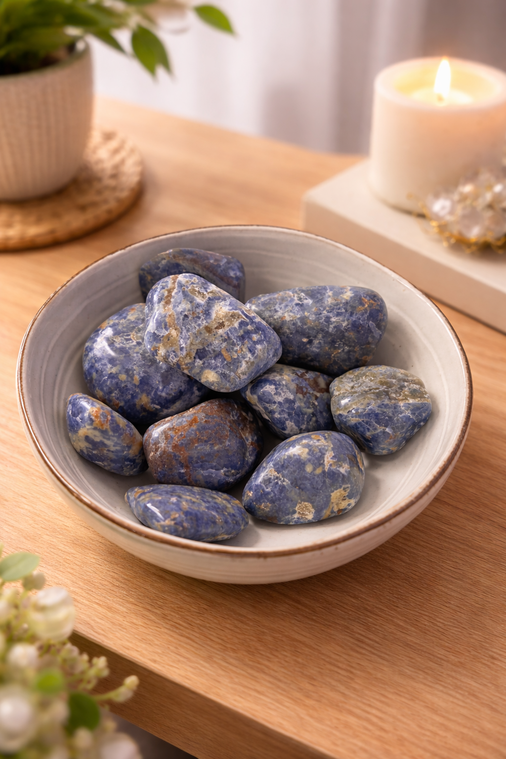 Sodalitas (būgninukas) – tai proto ramybės, vidinės tiesos ir sąmoningo mąstymo akmuo, jungiantis aiškų protą su gilia intuicija. Jo sodri mėlyna spalva primena naktinį dangų ar ramų vandenyną – tylų, bet talpų, leidžiantį mintims nusėsti ir išsigryninti. Gamtoje sodalitas sutinkamas įvairių atspalvių – nuo bespalvio ir tamsiai mėlyno iki žalio, gelsvo, šviesiai violetinio ar net švelniai rožinio, tačiau visose formose jis išlaiko tą pačią vidinės tylos ir sąmoningumo esmę.